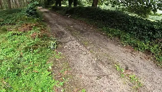 I see a girl cycling in the woods and when I go to urinate she helps me by giving me a blowjob in public