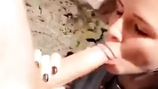 Beauty gives outdoor blowjob